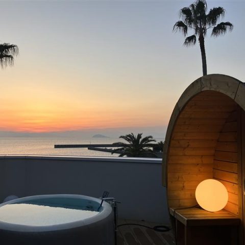 目の前の瀬戸内海を眺めながらの「外気浴」は、ご宿泊されたお客様から大変ご好評をいただいております。