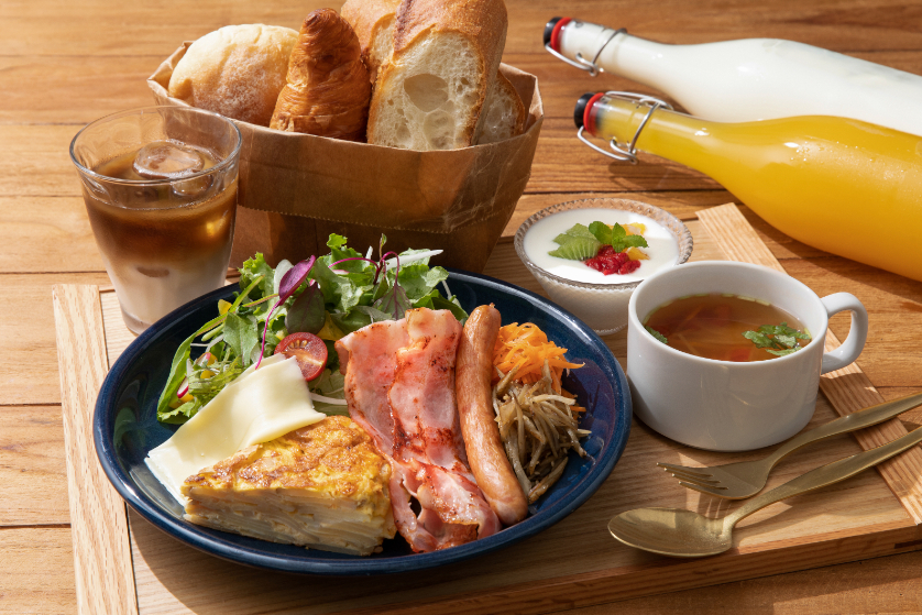 朝食では、山口県産の食材を中心に使用し、『美味しい焼き魚』『美味しいお味噌汁』『美味しいご飯』をコンセプトとした和食をご提供。地元で仕入れた食材で作られた、充実した内容の料理で特別な1日の始まりをお届けいたします。